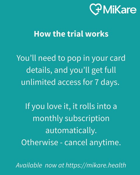 That’s why MiKare now offers a 7-day free trial - so you can take the first steps in building a clearer, calmer, more complete picture of your health.