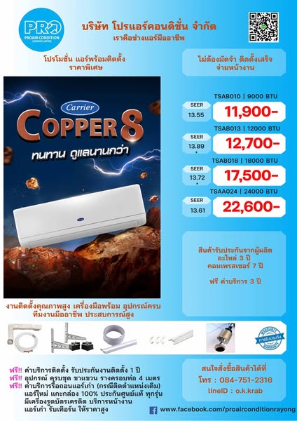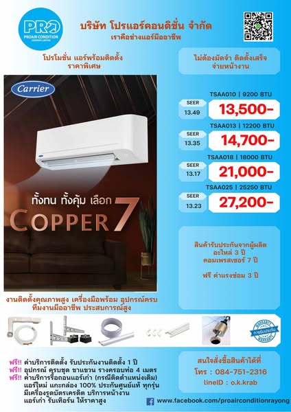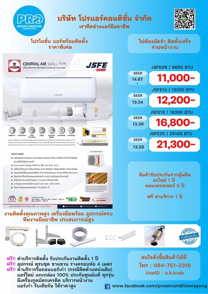 搜索关键词 air conditioner sales, aircon installation, Rayong aircon service, free aircon installation, air conditioning service, air conditioning promotion, air conditioner warranty, air conditioner no deposit, air conditioning Rayong, air conditioner copper pipe优势 No Deposit Required,Free Installation Kit (Copper Pipes, Brackets, etc.),100% New and Genuine Products with Warranty,1 Year Installation Service Warranty,Guaranteed Quality Installation,Credit Card Payment On-Site