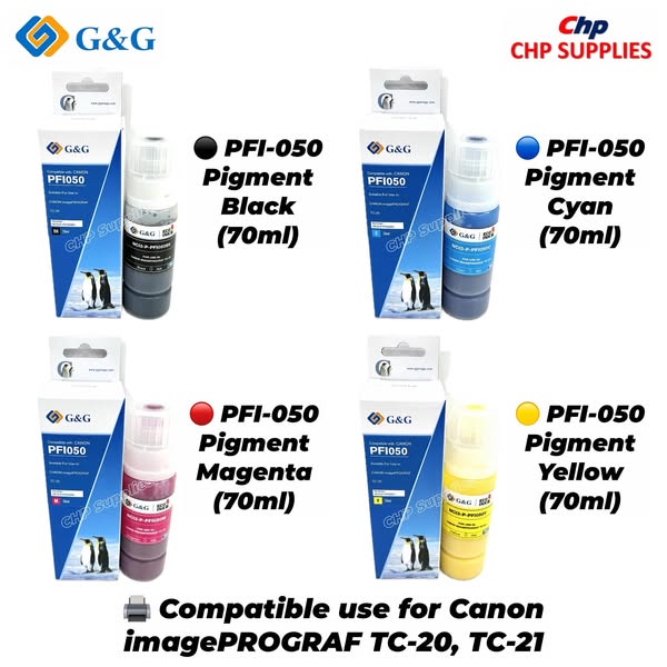 ❇️ G&G Premium Original Quality Compatible Refill Ink untuk Canon imagePROGRAF TC-20, TC-21 :