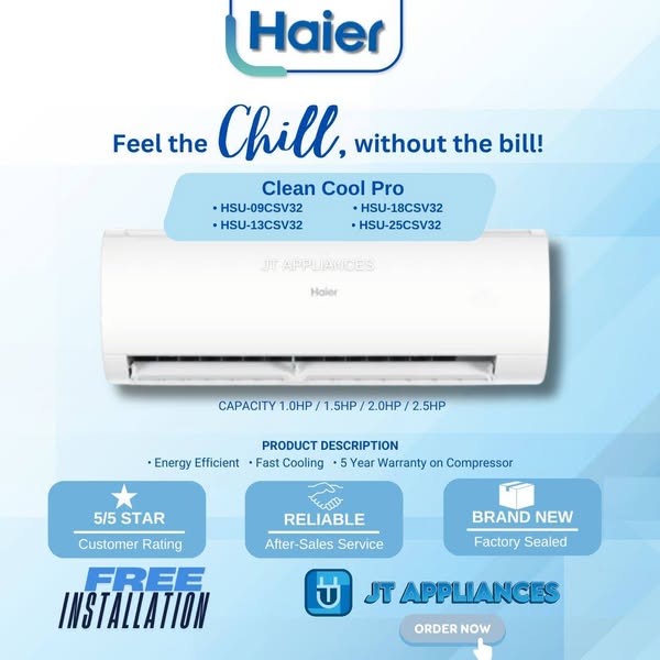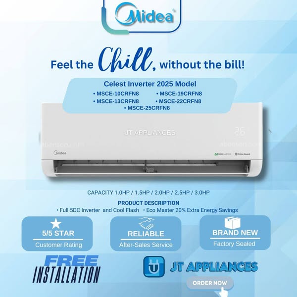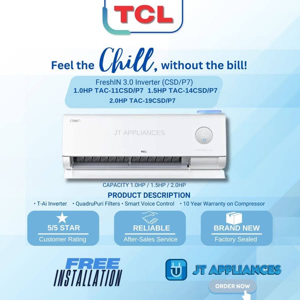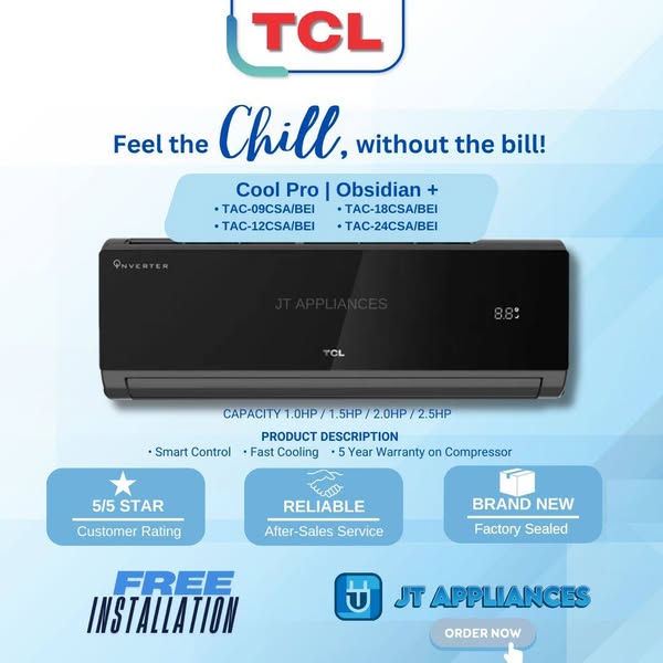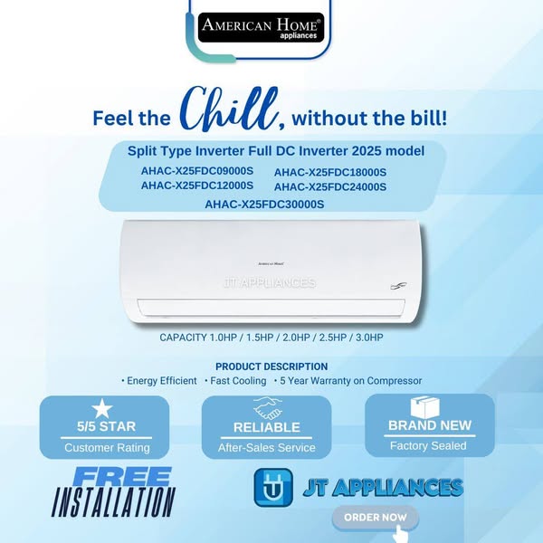 搜索关键词 Split Type Aircon, Inverter Aircon, Murang Appliances, JT Appliances, Air conditioning, Home cooling, affordable aircon, energy efficient, free delivery, COD payments优势 Free product demonstration,Competitive pricing,Brand new and sealed units,Very responsive to messages,No downpayment required,Complete unit with warranty,Kind and thoughtful delivery,Great after-sales service