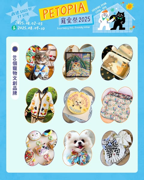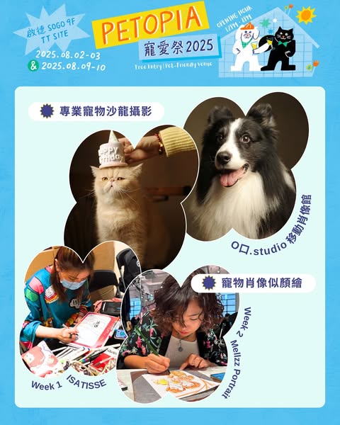 炎炎夏日,「Petopia 寵愛祭 2025」邀請你與毛孩一同參加歡樂室內派對!今個個週末,於啟德 SOGO 9樓 TT Site 溫暖登場。40 多個萌寵品牌、文創設計品牌一同打造人與動物共享的夢想場地。現場設有互動體驗區、熨貼工作坊、寵物沙龍攝影師、特色 Photo Spot、即場繪畫主子可愛肖像等精彩活動。讓我們一同記錄仲夏毛孩日記,打造出充滿「寵」愛氣息的萌系市集! ~