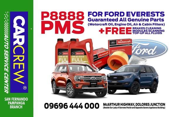 搜索关键词 Ford Ranger service, Ford Everest maintenance, Car repair Pampanga, Genuine Ford parts, Ford certified technician, Vehicle PMS package, Auto shop Philippines, CarCrew San Fernando, Motorcraft oil change, trusted auto shop优势 Genuine Motorcraft Parts,Ford Certified Technicians,Free Brake Cleaning,Free Module Scanning,Free Fluid Top-up