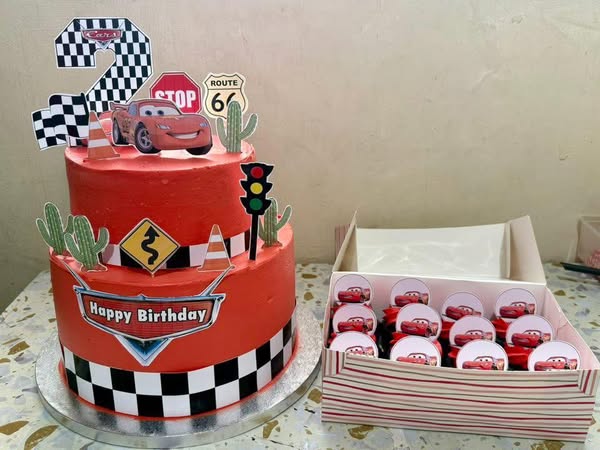 📣2 tier character Cake with 1cupcakes