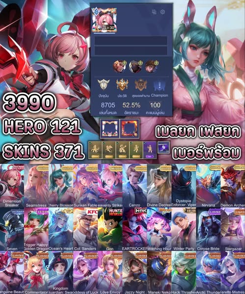 ✨มีทั้ง ไอดีไก่ ไอดีหลัก ไอดีกลอเลียส ไอดีสกินเเรร์✨