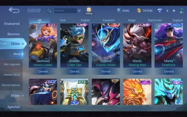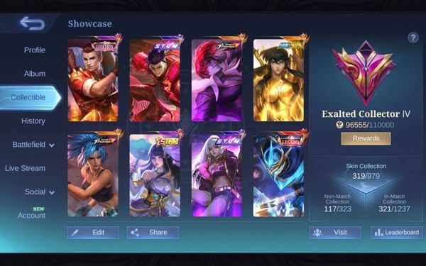搜索关键词 mobile legends account, mlbb account sale, exalted account, rare skins, gusion skin, chou skin优势 High-level account (Exalted IV),Rare skins (Skin 319),Specific Heroes and Skins (Chou K, Gusion Lg),Account change possible with no error mail
