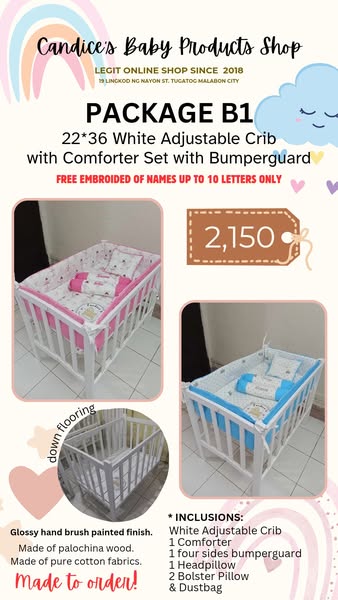搜索关键词 baby crib packages, affordable baby beddings, mall quality cribs, handmade baby products, Candice Baby Shop, baby bedding sets, metro manila baby store, baby products philippines, baby wooden cribs, Tugatog Malabon优势 Budget friendly,100% Mall Quality,Hand-made with Love