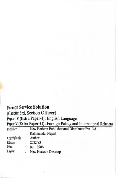 Foreign Service Solution (Gazette 3rd, Section Officer) Fourth Paper (Extra Paper I & II) | 27 sets Question Answers Including Old Question Solutions | Pararastra (Diplomacy) Book
