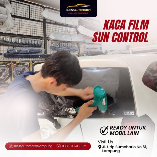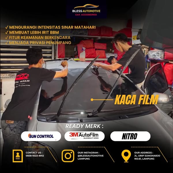 Promo eksklusif dan terbatas untuk kalian yang membaca iklan ini. Segera upgrade kaca film mobil kalian di Bless Automotive. Selain dikerjakan oleh tenaga profesional, kaca film kami sudah memiliki tolak panas, anti gores dan pemakaian 5 tahun.