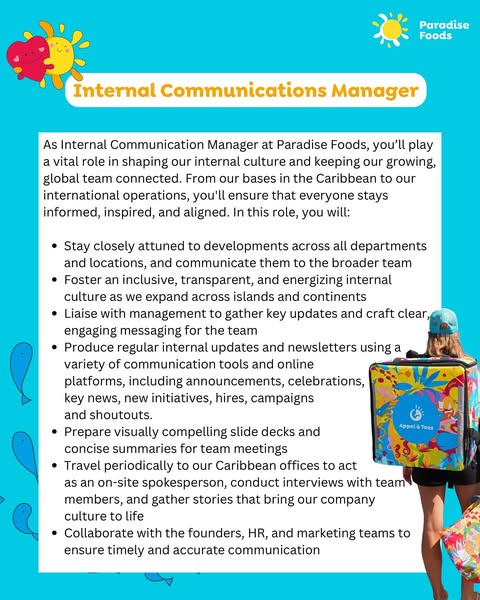 搜索关键词 paradise foods hiring, caribbean jobs, yacht provisioning, remote work, digital marketing manager, internal communications, purchasing supply, barbados base manager, island careers, global team优势 International Team,Fast-Moving Environment,Revolutionizing Caribbean Provisioning,Remote Work Opportunities