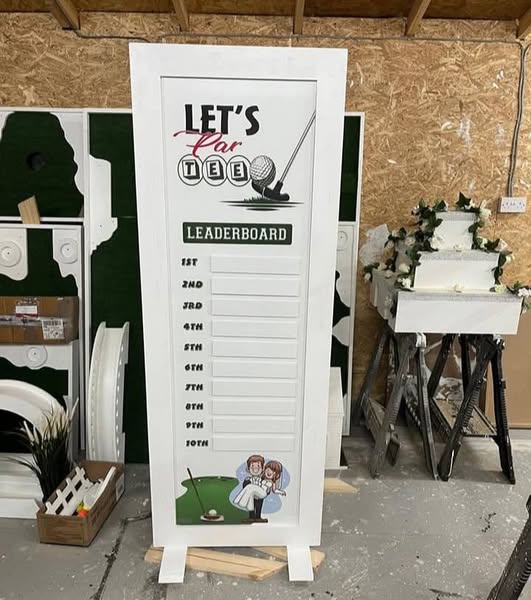 Opt for our Leader Board too (Can be designed with your own branding). Everything including obstacles are made from scratch, carefully designed, constructed and painted. Add that element of "fun" to your event/hire business with our outstanding 9 course Wedding mini golf.⛳️🪩 Wow your guests and add our stunning mini golf for your special day.🍾🥂🍾 We also make generic mini golf to suit your corporate event! All can be customised!