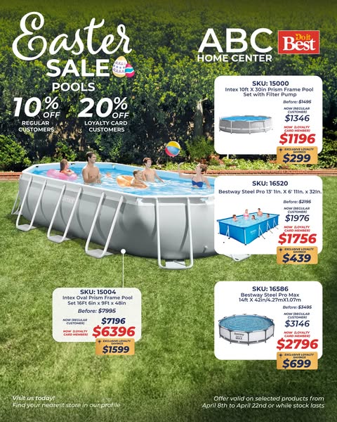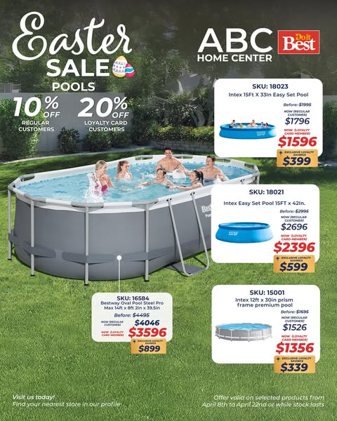 #ABCHomeCenter #EasterSale #PoolsideVibes #SummerReady #LoyaltyRewards #FamilyFun #BackyardGoals #PoolLife #OutdoorLiving #ShopLocal