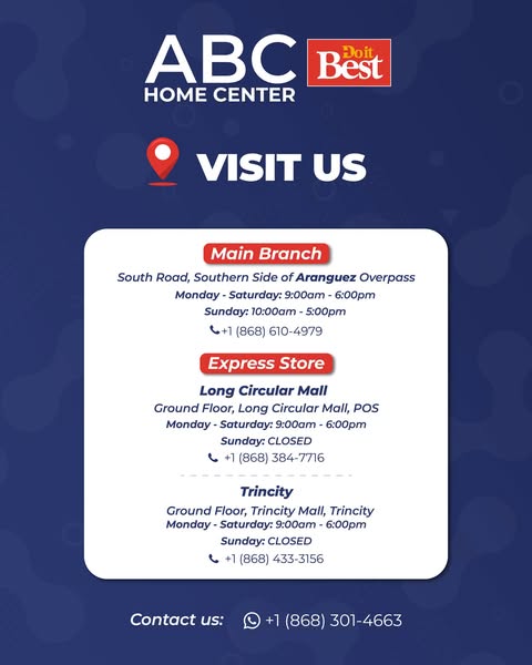 - Trincity: Ground Floor, Trincity Mall, Trincity.