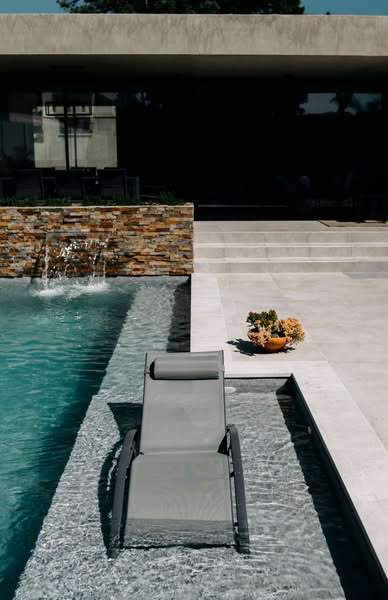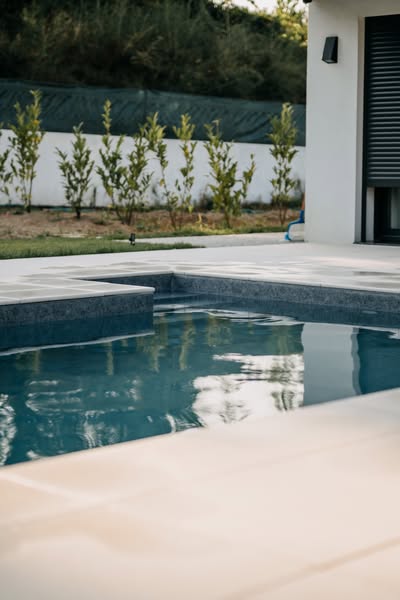 搜索关键词 swimming pool design, granite pool, 3D membrane pool, family pool, outdoor living space, Alkor membrane, natural stone pool, beach zone pool, garden pool, residential pool优势 Natural granite border,3D Granit Sand Alkor membrane,Beach zone,Ideal for family moments