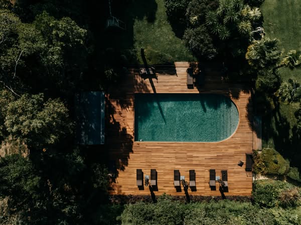 Esta piscina Skimmer com 8x3m, bordadura em granito natural, revestida em tela 3D Granit Sand com membrana Alkor é o projeto ideal neste ambiente de natureza. Contando com 1mt de zona de praia, esta piscina será o habitat perfeito para os momentos em família.