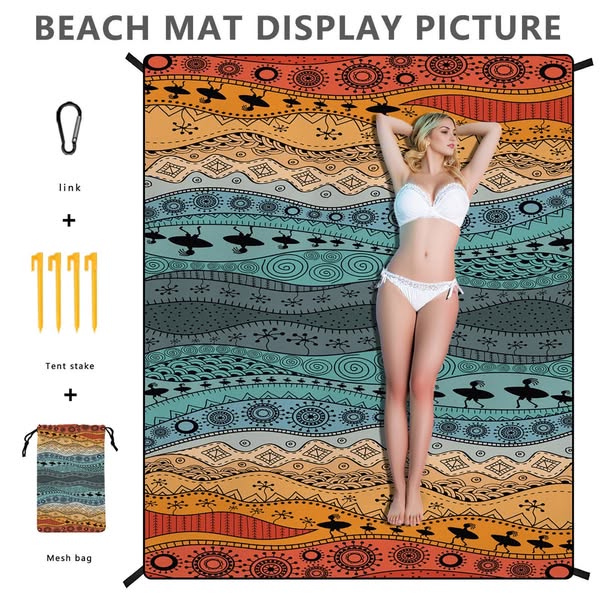 搜索关键词 sand free beach mat, outdoor blanket, picnic blanket, camping blanket, portable blanket, lightweight beach mat, quick dry blanket, vibrant beach accessories, durable beach blanket, polyester nylon blanket优势 Sand-free material,Unique and vibrant design,Fast drying,Lightweight and portable,Versatile for various outdoor activities,Durable Construction