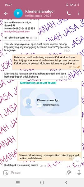 搜索关键词 pinjol service, financial solution, debt relief, telegram channel, fast loan, easy approval, instant money, online loan, urgent funds, financial assistance优势 Claims to solve financial problems.,Offers an opportunity to escape financial issues.