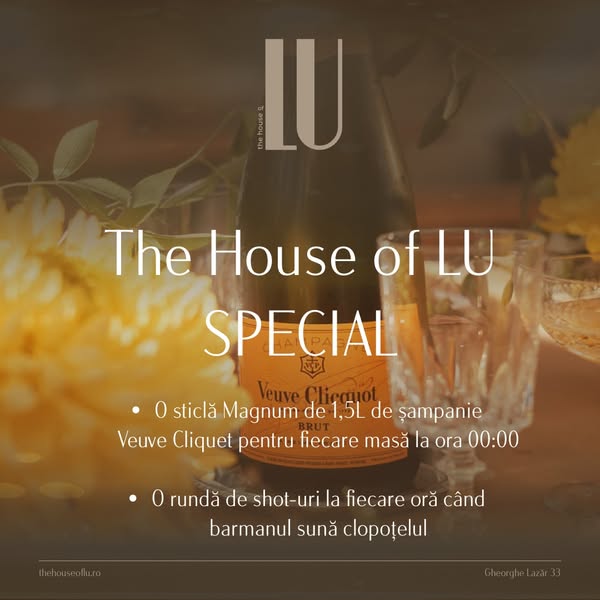 搜索关键词 New Year's Eve Timisoara, Exclusive New Year, Veuve Clicquot Celebration, The House of LU, Premium New Year's Party, Refined Menu New Year, New Year's Eve Party, Romanian New Year Event, Luxury New Year's Eve, Party in Timisoara优势 Exclusive experience,Refined menu,Veuve Clicquot Champagne,Premium location