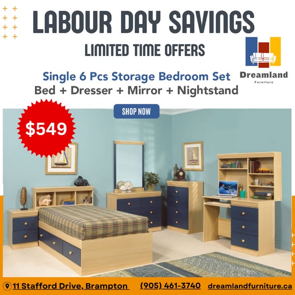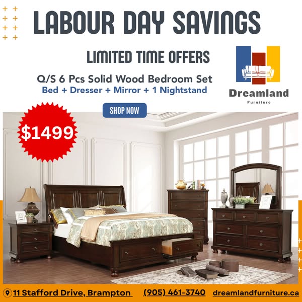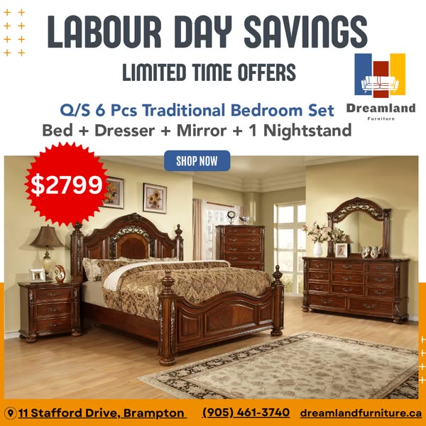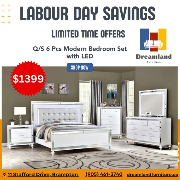 Q/S 6 Pcs Modern Bedroom Set with Hydraulic Storage + LED,Bed + Dresser + Mirror + 1 Nightstand