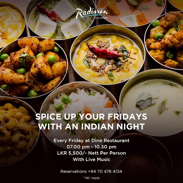 搜索关键词 Colombo dinner deals, Sri Lankan cuisine, Indian night, Roast dinner, Radisson Hotel Colombo, Dine restaurant, Weekly theme night, Culinary adventure, Restaurant promotions, Foodie crew优势 Diverse culinary experiences,Fixed price for themed nights,Convenient reservation process