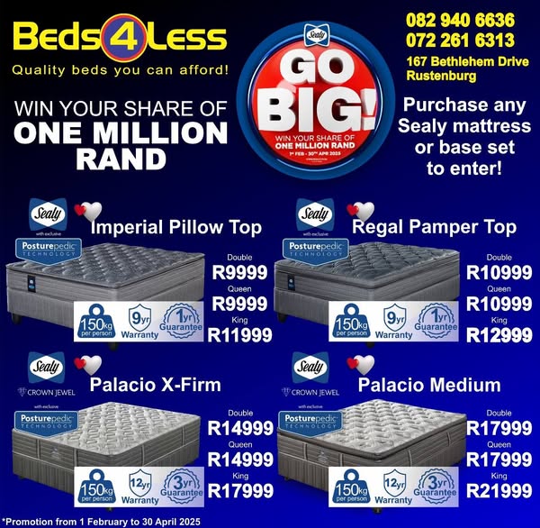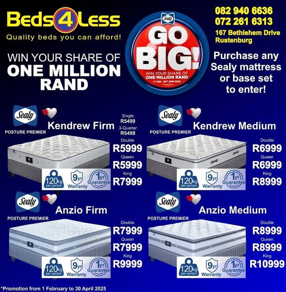 搜索关键词 affordable beds, quality furniture, Rustenburg furniture store, bedroom furniture, beds4less rustenburg, comfortable beds, stylish spaces, furniture sale, new month furniture, South Africa furniture优势 Affordable Prices,Quality Beds,Stylish Furniture,New Products
