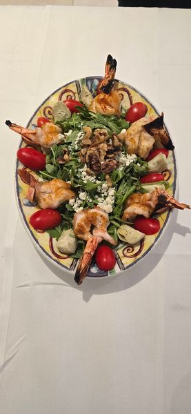 A seafood lover’s dream—tender calamari and shrimp in a marinara sauce.
