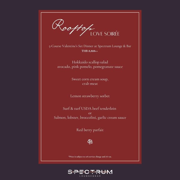 🌹✨ Celebrate love in the heart of Bangkok with an unforgettable Valentine's evening at Spectrum Lounge & Bar and Market Café by Khao! Whether you're seeking a romantic rooftop experience with stunning views or a cozy Thai-inspired dinner, we have the perfect setting to make your celebration truly special.