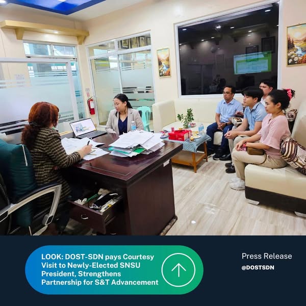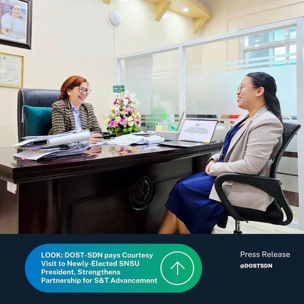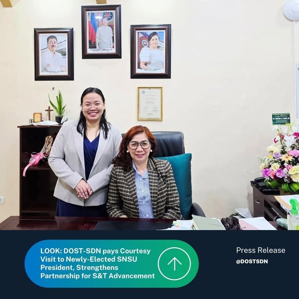 The Department of Science and Technology - Surigao del Norte (DOST-SDN) paid a courtesy visit to the newly-elected President of Surigao del Norte State University (SNSU), Dr. Rowena A. Plando, to strengthen institutional ties marking a significant step towards enhanced collaboration in science and technology (S&T).
