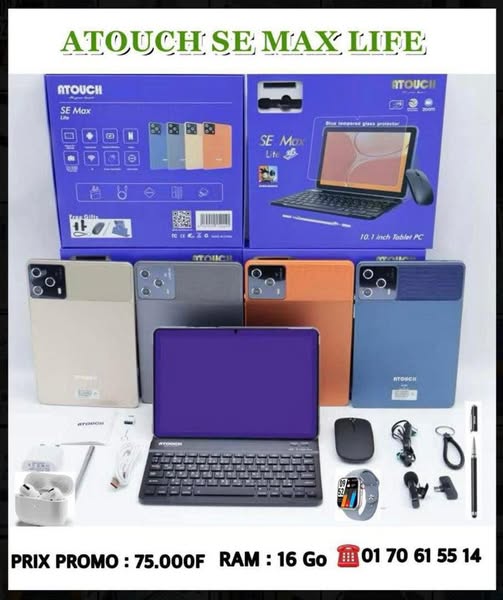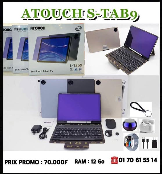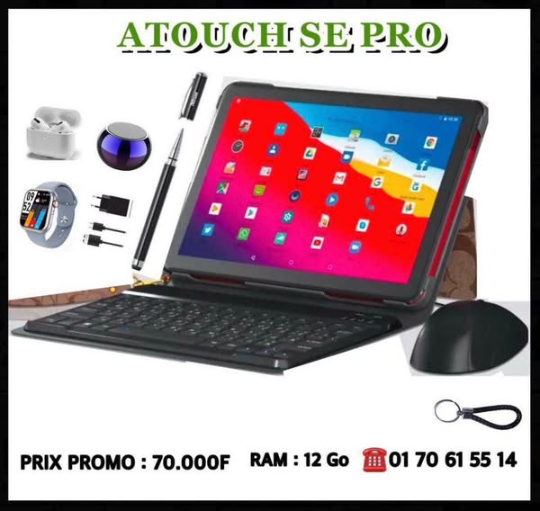 搜索关键词 Tablet Computer Sale, Android Tablet, 5G Tablet, Bluetooth Keyboard, Smartwatch Included, Abidjan Delivery, Cote d'Ivoire Shipping, Office Applications, Social Media Apps, Long Battery Life优势 Large internal memory (512 Go),Ample RAM (8-16 Go),High-resolution camera with flash,Includes Bluetooth keyboard and mouse,Comes with Bluetooth AirPod earphones,Includes Smartwatch with bracelet,Stylus pen included,Stylish protective case,Shockproof design,Dual SIM card slots,5G LTE Connectivity,Full HD 11-inch screen,Android 14,Multimedia port supporting up to 128 Go memory card,Long-lasting battery (12,000mAh),Pre-installed popular applications (Office, Social Media, Streaming),Suitable for various activities (work, business, education),Delivery throughout Abidjan and shipping across Côte d’Ivoire,Purchase with receipt and 3-month warranty,After-sales service available 7/7 days