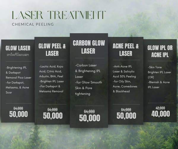 💁♀️💁♂️ချစ်ရတဲ့ customer လေးတို့ရဲ့ အသားအရေအလိုက်လိုအပ်ချက်လေးတွေပိုပြီးဖြည့်ဆည်းပေးနိုင်ဖို့အတွက်လည်းTreatment အသစ်လေးတွေ၊ ဆေးအသစ်လေးတွေကို ထပ်တိုးထည့်ထားပေးပါတယ်ရှင်💝