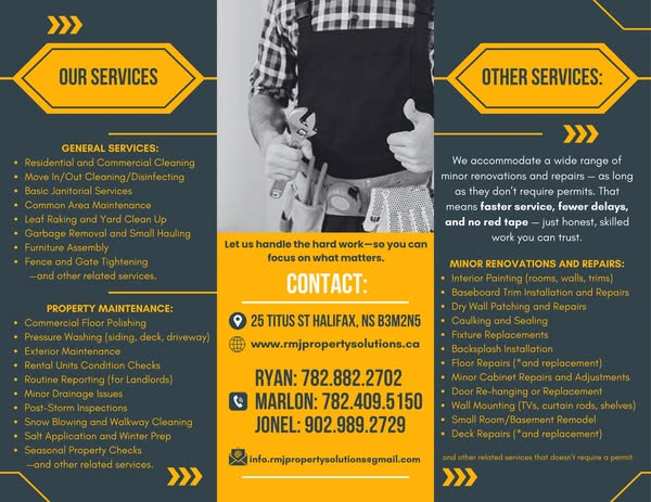 搜索关键词 property maintenance, home repair, local services, nova scotia, general services, cleaner homes, safer space, property management, business solution, ready solutions优势 Reliable service,Local expertise,Ready solutions,Tailored services