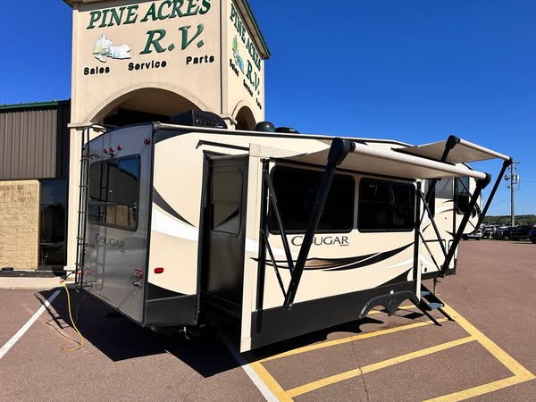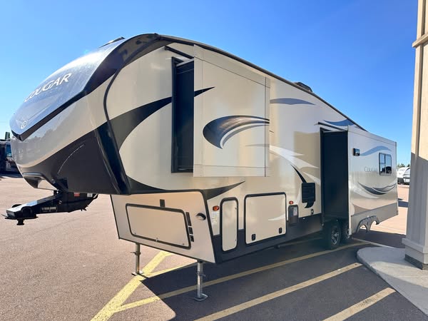 搜索关键词 Keystone Cougar, Half-Ton RV, Used RV, RV for sale, Fifth Wheel RV, Travel Trailer, RV Financing, RV Living, Entertainment RV, Spacious RV优势 Entertaining layout with pop-up TV and L-shaped sofa,Spacious interior with two slide-outs,Climate comfort with heated underbelly and insulation,Modern features like KeyTV and iN-Command system,Financing options available