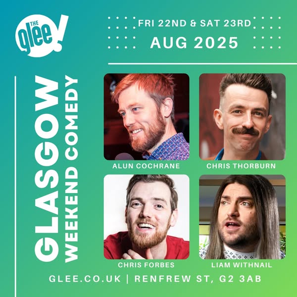 搜索关键词 Glee Club, Comedy Show, Bank Holiday, Alun Cochrane, Summer Sale, Glasgow Comedy, Live Entertainment, Comedy Night, Weekend Comedy, Food and Drinks优势 Stellar Comedian Line-up,Mouth-watering Food and Drinks Menu,Summer Sale with 50% Off