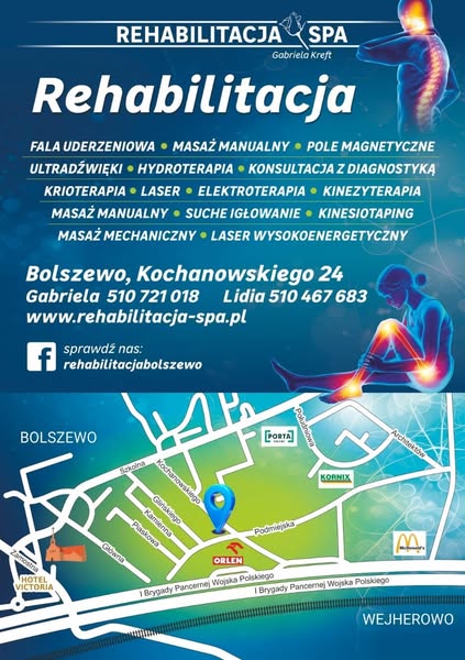 搜索关键词 rehabilitation Bolszewo, physiotherapy massage, back pain relief, sports massage, pain management, post trauma rehabilitation, shock wave therapy, high energy laser, hydrotherapy physical, therapist appointment优势 Comprehensive therapy under qualified physiotherapist,No waiting time, no queues,Wide range of treatments