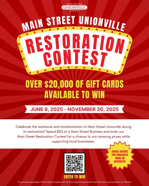 搜索关键词 support local businesses, gift card giveaway, main street promotion, unionville contest, win big, community support, local economy, shop local, small business promotion, main street restoration优势 Supports local businesses,Opportunity to win gift cards,Simple entry requirements