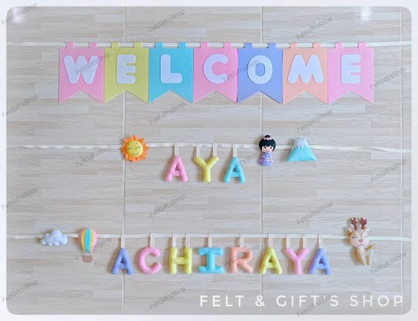 搜索关键词 felt banner, name tag, personalized gift, baby shower, birthday banner, handmade craft, cheap price, free shipping, Thailand craft, felt giftshop优势 Affordable Prices (3 for 100฿),Free Shipping on orders over 500฿,Free string with every purchase,Handmade, new items, quick turnaround (1-2 days),Personalization options (letters, Thai characters, vowels)