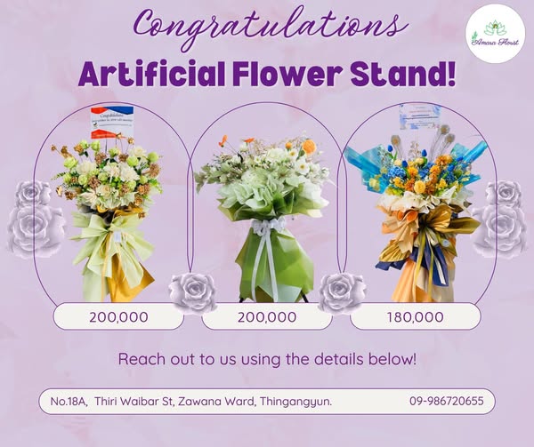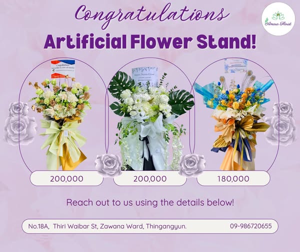 Flower Stand price range : start from 130,000 MMK