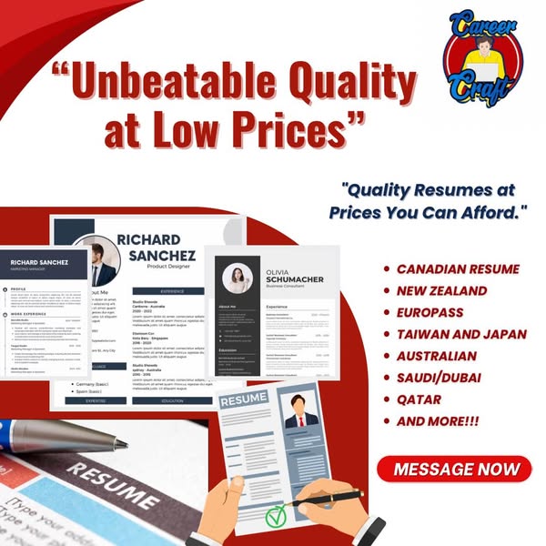 搜索关键词 resume maker, CV writing, cover letter design, job application, affordable resume, resume editing, resignation letter, personalized resume, document service, international resume优势 Affordable Pricing,Pay After Service,Fast Turnaround Time,Multiple Formats Available