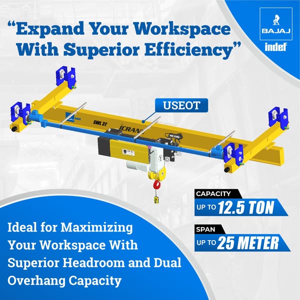 In the ever-evolving landscape of material handling, Bajaj Indef’s overhead crane stands as a testament to excellence and innovation. With a diverse clientele spanning construction, manufacturing, automotive, metal, logistics, pharmaceuticals and more, we recognize the unique needs of every sector we serve. Our overhead crane solutions are more than mere equipment; they are tailored to enhance operational efficiency, productivity, and safety.