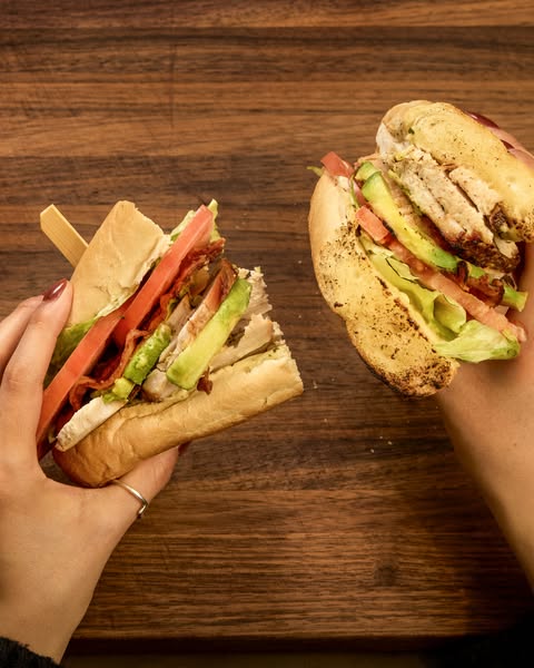Roasted turkey breast, lettuce, tomato, fresh herb aioli, swiss cheese, avocado, bacon, served on buttered 8-inch baguette