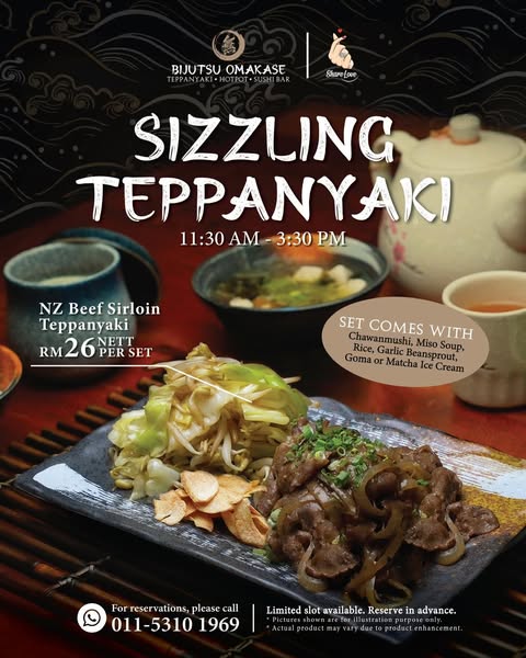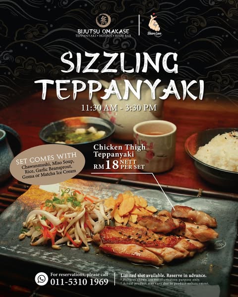 搜索关键词 teppanyaki lunch set, muslim friendly food, ipoh restaurant, affordable teppanyaki, live cooking, halal restaurant ipoh, pork free restaurant优势 Affordable price (RM18 onwards),Muslim-friendly,Pork-Free,Lard-Free,Alcohol-Free,Live Teppanyaki cooking experience,Reopening with fresh and clean environment