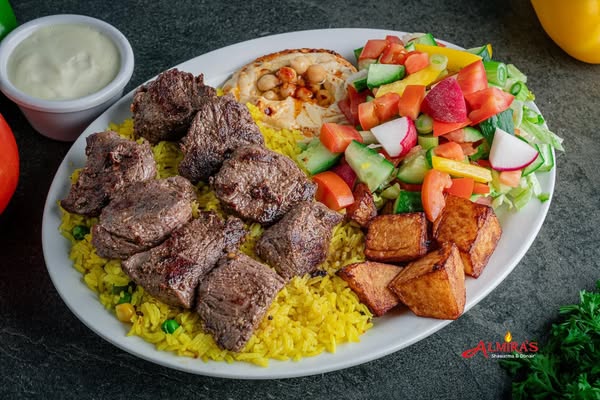 Whether you’re craving a juicy shawarma wrap, crispy falafels, tender kababs, or a stacked donair platter—Almira’s has it all, made with love and tradition.