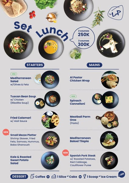 搜索关键词 restaurant set lunch, weekday lunch deal, spanish pork steak, mediterranean food, the loop restaurant, hanoi lunch, set lunch menu, fresh flavors, value lunch, limited time offer优势 Fresh Flavors,Stylish Vibes,Weekday Indulgence,Value for Money,Mediterranean soul