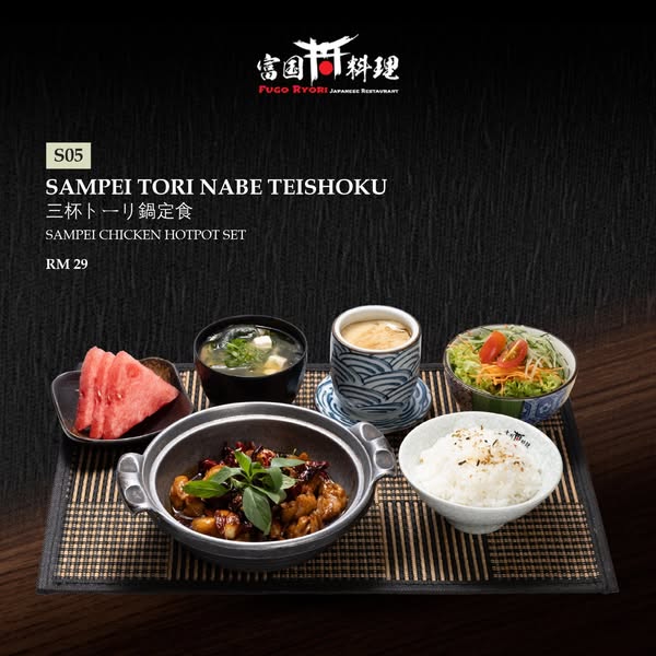 搜索关键词 set lunch, muslim friendly food, japanese restaurant, affordable meal, melaka restaurant, pork free food, lunch specials, Fugo Ryori, malacca food, lunch promotions优势 Affordable price,Diverse selection of 19 set lunches,Pork-free and Muslim-friendly options,Complete meal with mains, fruits, sides, and salad