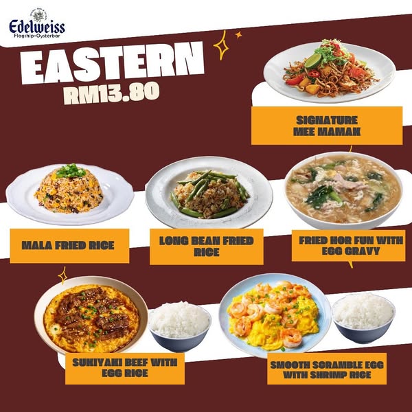 搜索关键词 Set Lunch Deal, Affordable Lunch, Kuala Lumpur Food, Restaurant Promotion, Weekday Lunch, Noodle Fried Rice, Free Soup, Edelweiss Restaurant, Pearl Shopping Gallery, Malaysian Food优势 Affordable price,Variety of choices (Noodles, Fried Rice, Pasta),Free Soup and Drinks,Convenient weekday availability