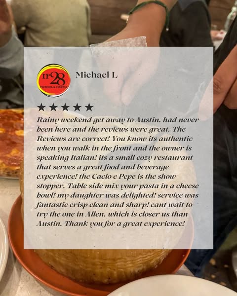 #atxpizza #Numero28Austin #ItalianFoodAustin #AustinEats #CustomerLove #AuthenticItalian #FoodieFavorites #WineAndDineATX #ATXpizza