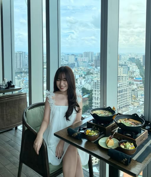 The menu is rich, from soft salmon rice to a sweet, flavorful hot pot, all starting from VND 149,000++/ set, served daily from 11:30 to 14:00 PM in a luxurious setting on the 28th floor, offering panoramic city views. A complete experience for a memorable date!