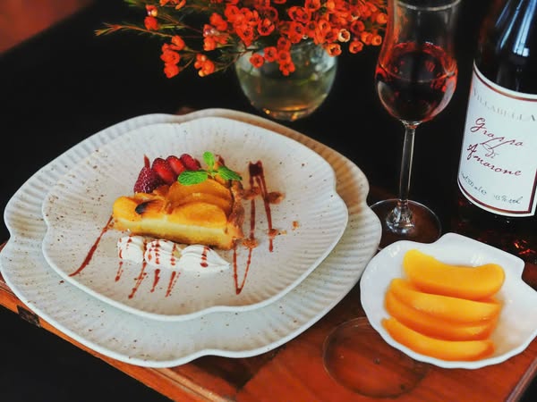 * Bánh đào nướng, dùng kèm kem ngọt phomai Mascarpone.