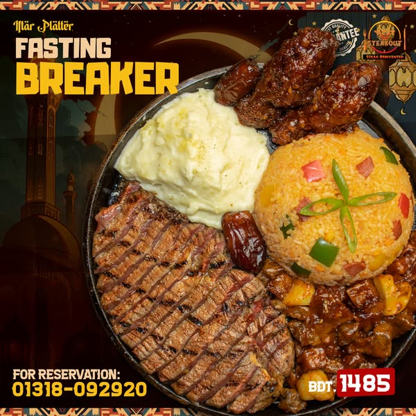 搜索关键词 Ramadan Iftar, Steakout Restaurant, Dhaka Food, Iftar Platters, Meat Lovers, Banani Restaurant, Dhanmondi Restaurant, Special Iftar, Ramadan Deals, Food Promotion优势 Variety of Platters,Succulent Meats,Convenient Location