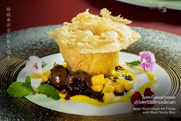 🔸 Deep-fried Mango Ice Cream with Black Sticky Rice - Crispy mango ice cream served with Black Sticky Rice and Longan.