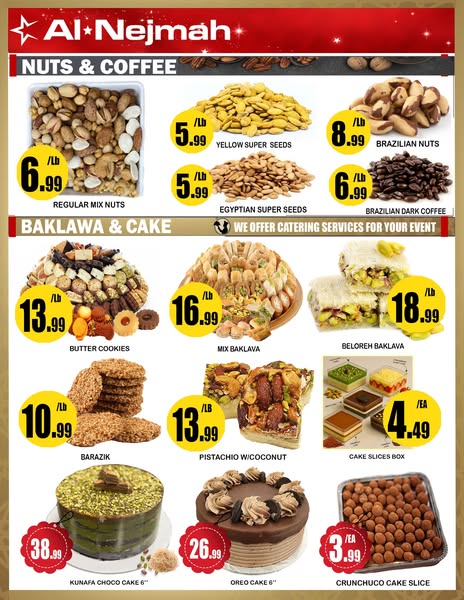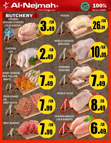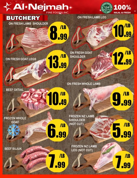 搜索关键词 Halal groceries Mississauga, Middle Eastern food, Alnejmah flyer, grocery deals, restaurant near me, shawarma kebab, Iraqi kebab, halal meat, Mississauga eats, weekly grocery deals优势 Incredible Deals,Wide selection of Halal products,Convenient location and hours